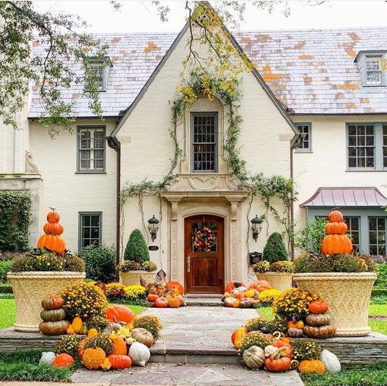 Cover your porch and steps in pumpkins. Use fantasy pumpkins to get a whimsical look!