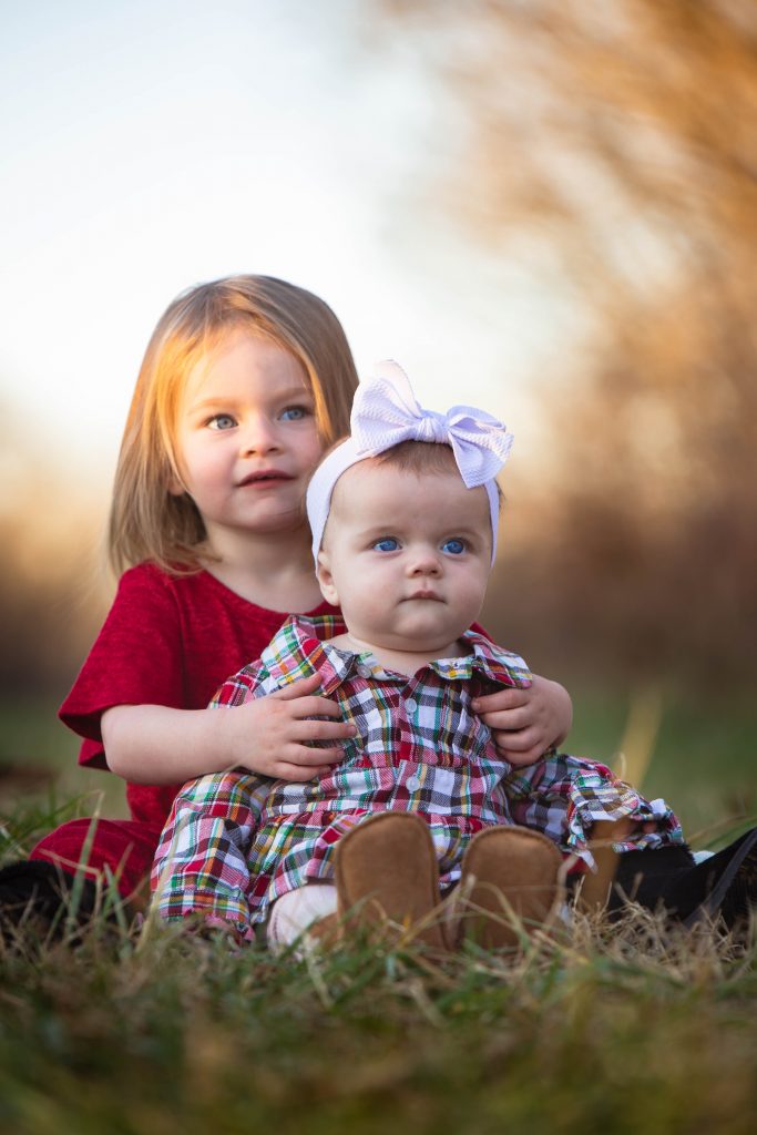 It can be very difficult, especially with multiple little ones, to get that perfect smiling or looking at the camera shot. Yelling their name or making your own high pitch noises, though comical, won’t always do the trick for keeping babies engaged and trying to focus on the sound. For any type of photoshoot including my girls I make sure to bring a squeaker, a rattle, or something that makes a unique sound that I am sure they will find captivating if only even for a few frames. That’s why I usually like to take multiple because one sound will inevitably get old. If the toy has some crazy light up foundation then that’s a bonus!