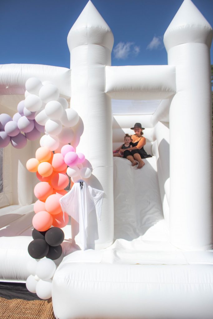 For this year’s kids Halloween party I was inspired to go very Boho with the decor, and offer more spots with photo opportunities and activities. I teamed up with Bounce My Way to provide the hit entertainment of the party, the beautiful Slide Bouncer! It kept all the guests (yes even some adults) entertained from beginning to end. It is definitely a staple you should look into renting for any big party or event you may have coming up because they’re great for everything from Birthday parties to weddings! They were so quick to setup and super nice! I highly recommend them. Enter NICKI10 in the notes section when you book them for a special discount!