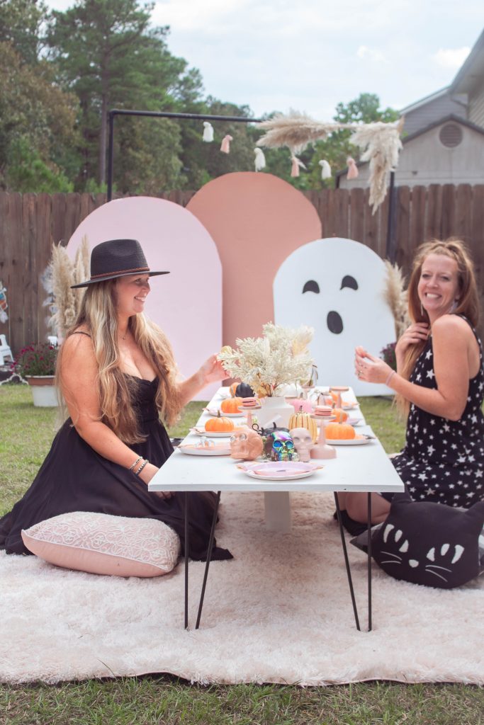 My party-ner-in-crime (you get it..) Ashley did an amazing job with the balloon install for the bounce house. I created the BOO letters and balloons setup with foam board and tape! We were up together prepping for a long time the night before with those balloons but it’s worth it! Just look at how impactful the end result is!
