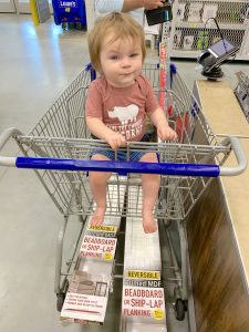 After painting the inside completely, while that was drying we took our measurements, our list, and our little cutie to Lowe’s to gather all the supplies we would need. Here is what we used: