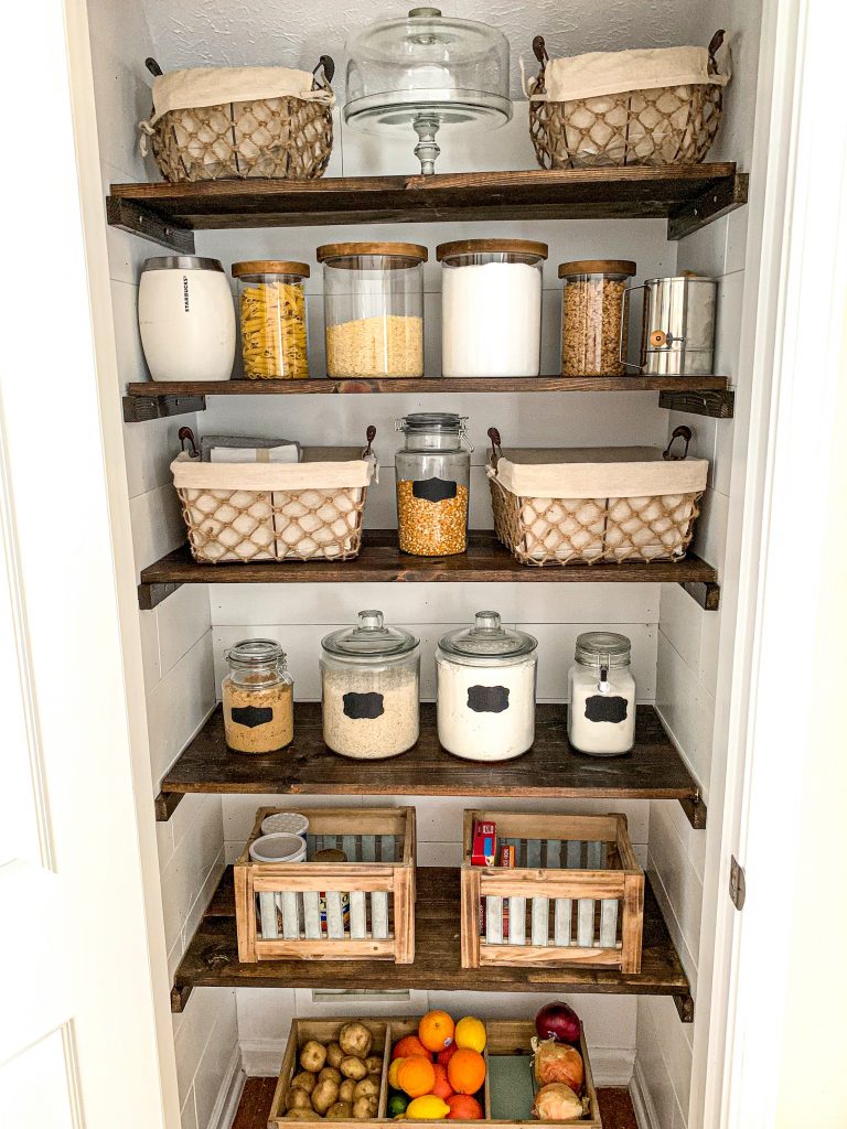 Of course after the project was done I was dying to rush out to all the stores and search for the perfect pantry organization I could find to fit the theme but not be too much. All of the items in the pantry are from multiple different home decor shops but I have linked a few for you, as well as tools we used, at the end of this post if you want to find them easily! You’ll also see the potato biter at the end as well. 🙂