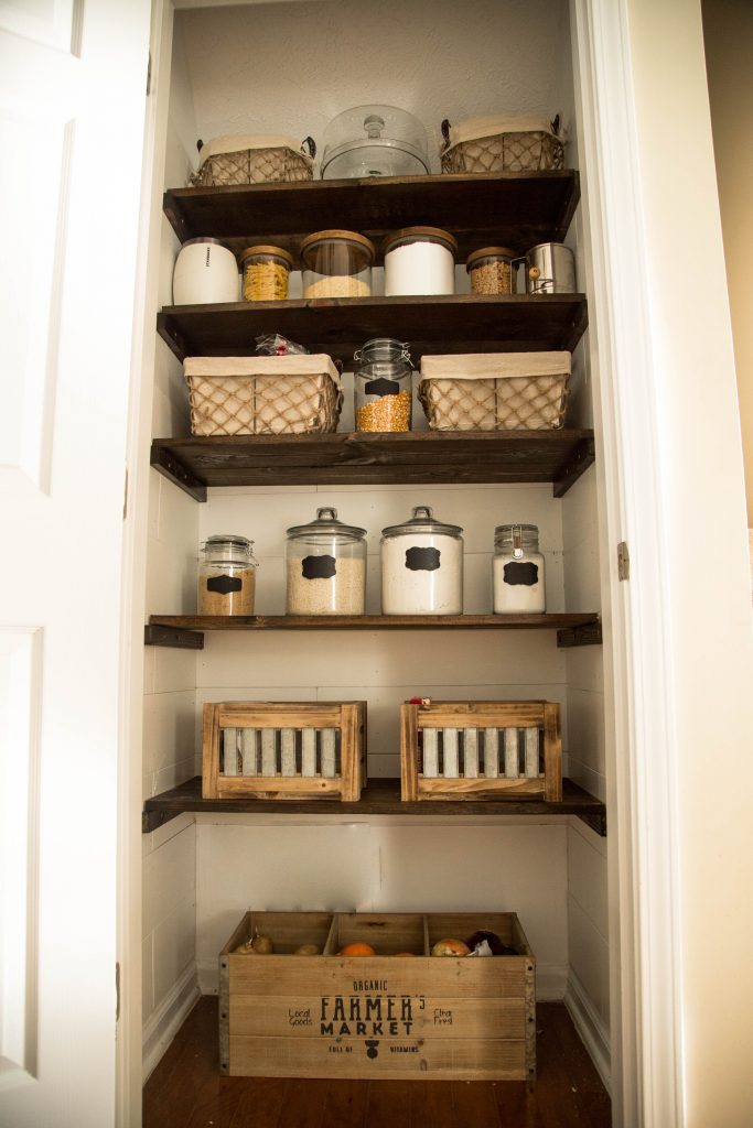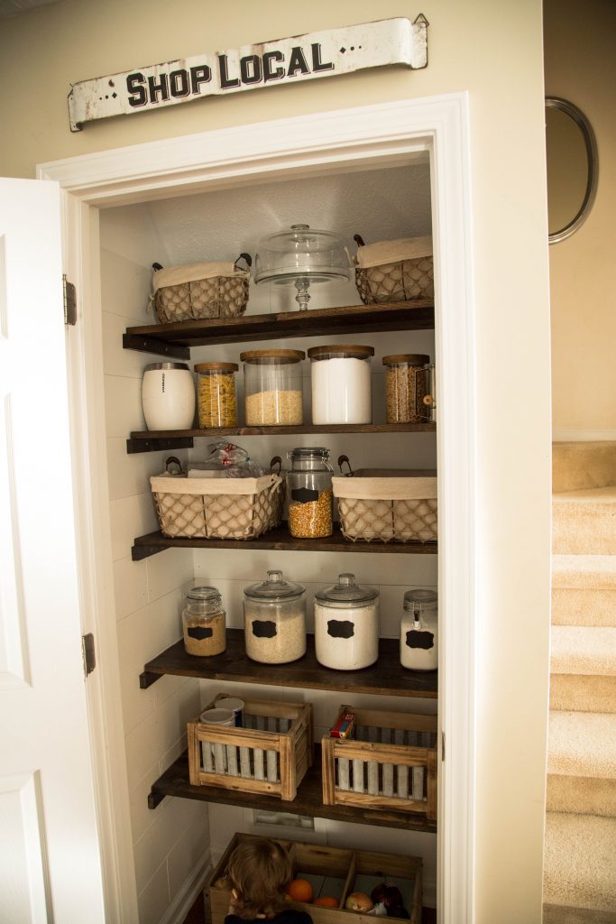 Our first home remodel was taking our coat closet and turning it into the farmhouse pantry of my Pinterest dreams! I knew the closet was too big to waste on just a boring old space to hang jackets, so I scrolled through all the pantry makeovers I could find and landed on the biggest inspiration I knew I could follow to create the pantry I wanted. Ashley from Little Glass Jar blog has the easiest pantry makeover post to follow so I used hers as guidelines for remodeling our coat closet. See her farmhouse pantry makeover here.