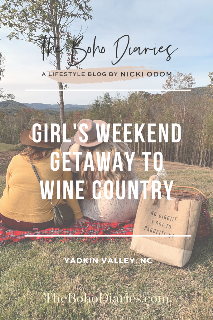 There is nothing like reconnecting with yourself and having like-minded women to rant and rave with in the mountains. Mix the fresh air with a couple of worry free days and you got yourself some form of a spa weekend in my opinion. A few friends and I decided we wanted to spend a weekend away, just us gals, so we took off to Yadkin Valley to go winery hopping. Even though this was my first experience going to REAL wineries and vineyards, I HIGHLY recommend going to Yadkin Valley and looking up all the vineyards that are open now, and take advantage of the beautiful fall weather in the North Carolina mountains.