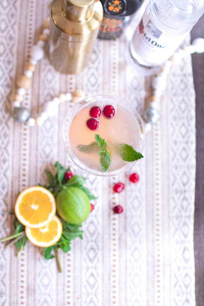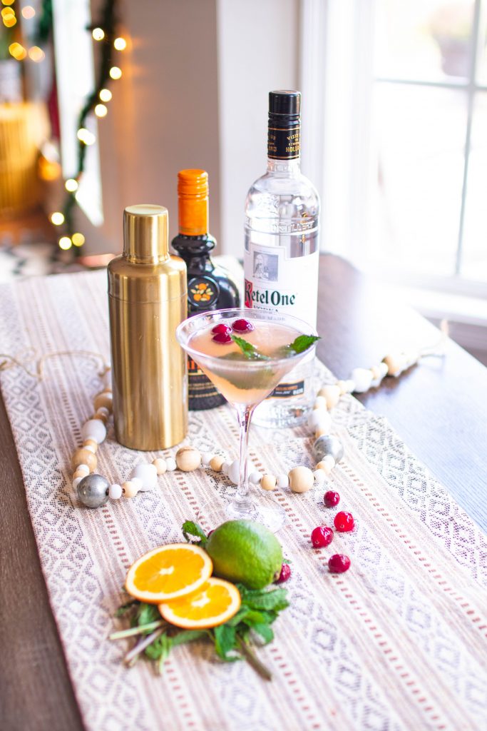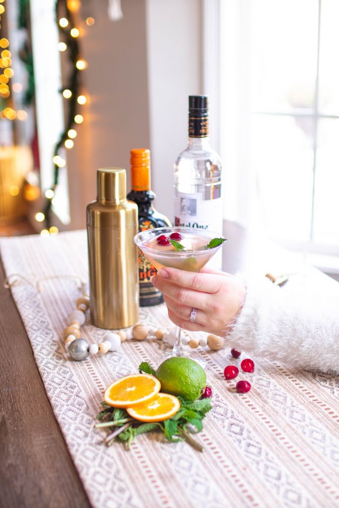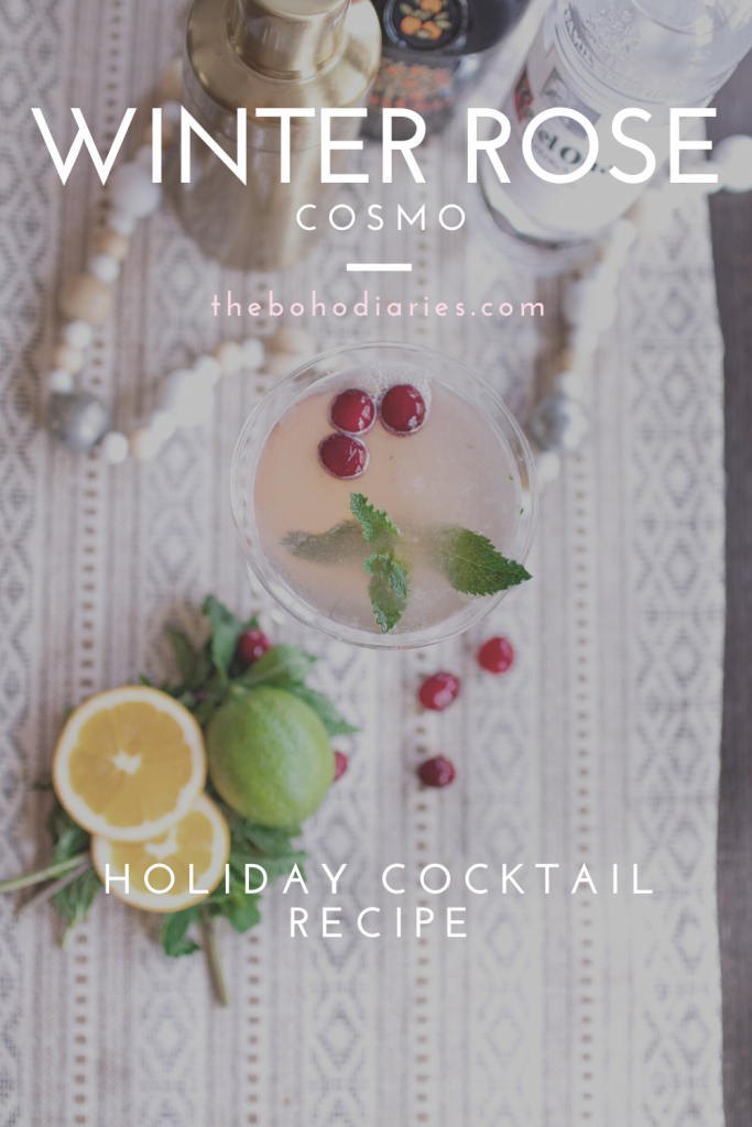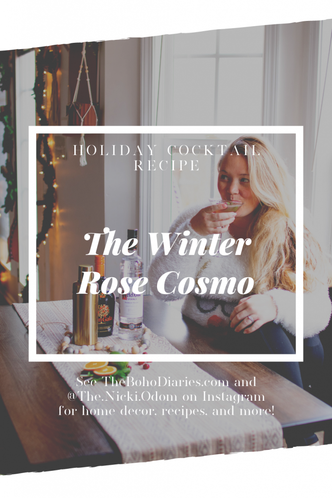 This holiday season we have been trying to be extra cheerful in our home and not dwell on all the canceled events and lack of parties we normally would attend because of the looming virus in the air. So Morgan and I decided to mix it up and throw our own little party, starting with this Winter Rose Cosmo. I love a good martini so Morgan likes to surprise me with different recipes at home, because the only time I ever treat myself to those are at restaurants, but I honestly can’t even remember the last restaurant we sat down in… that is so sad to think about it.. I guess it would be our anniversary back in October. Before then I honestly can’t remember. I seriously can’t wait until we can get social again without the gloom and doom of not seeing smiling faces and having to sit 6 ft apart, but I digress…